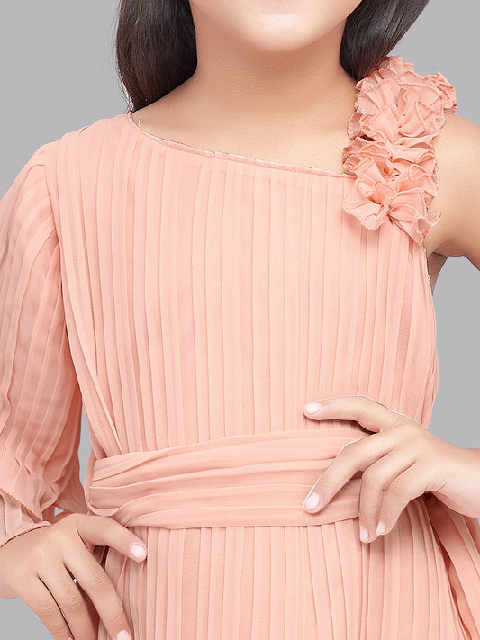 Pink Chick Accordion Pleated One Shoulder Dress -Peach