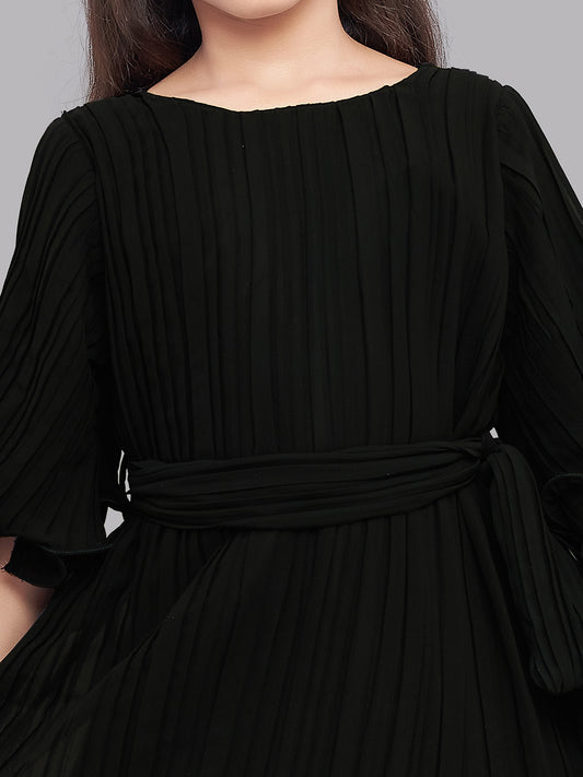 Pink Chick Accordion Pleated One Shoulder Dress -Black