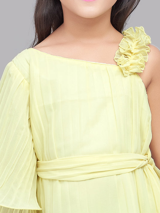 Pink Chick Accordion Pleated One Shoulder Dress -Yellow