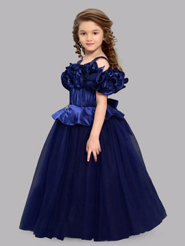 New ArrivalPinkChick Off Shoulder Ruffle Gown - Navy Blue