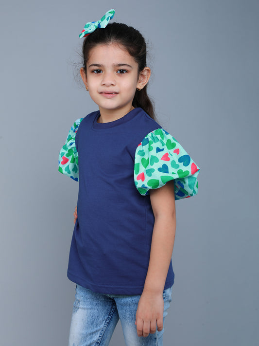 Puff Sleeves Heart Vibe T-Shirt-Blue