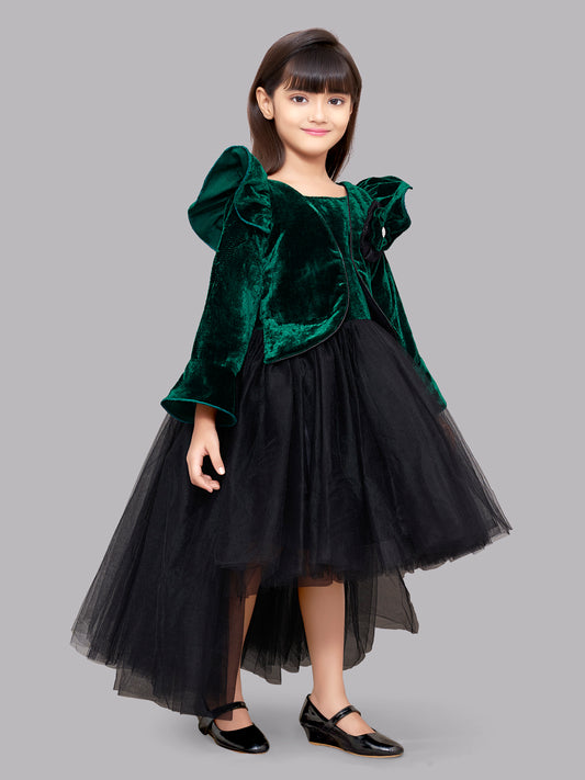 Pink Chick Emerald Green Velvet and Black Jacket Style Hi-Low Dress