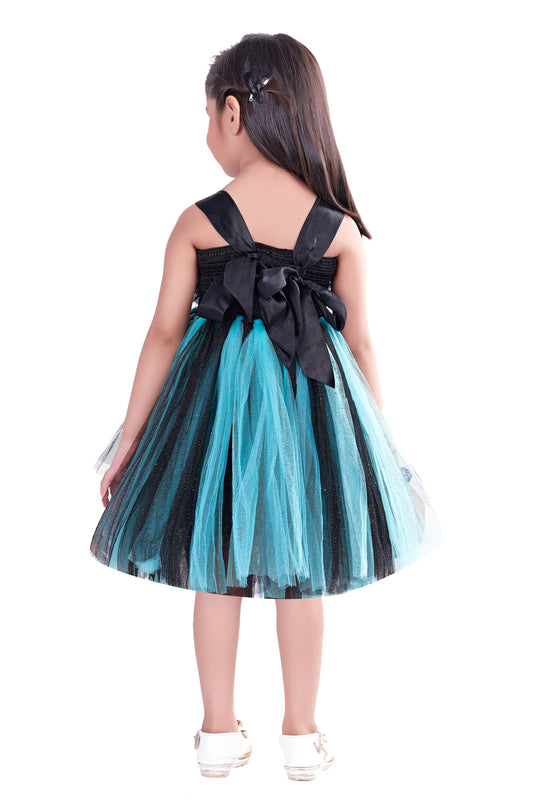 Aqua&Black Pom Pom Tutu Frock