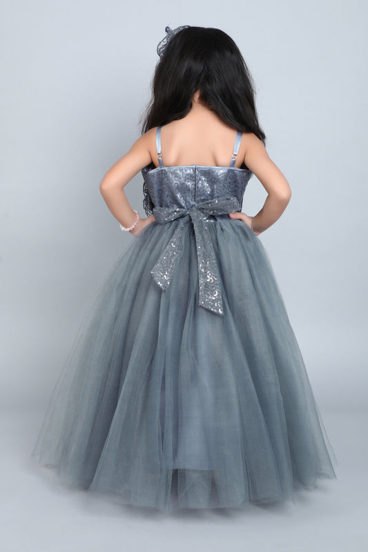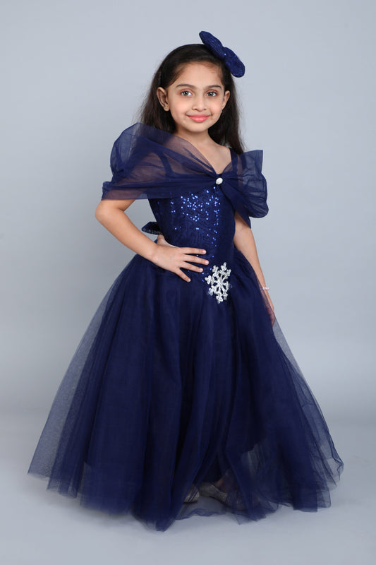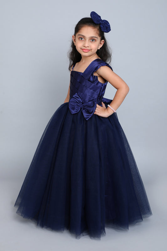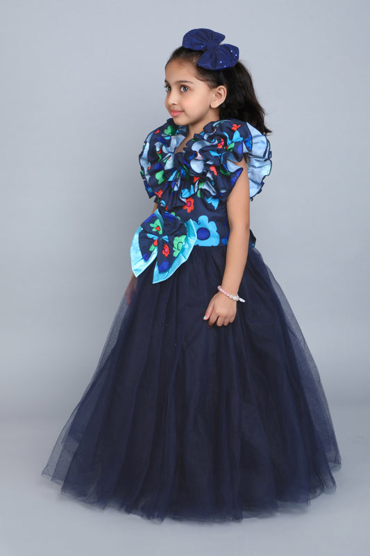 New ArrivalFloral Ruffle and Bow Gown -Navy Blue