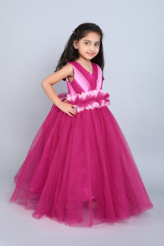 New ArrivalPinkChick Pleats N Ruffle Gown --Pink