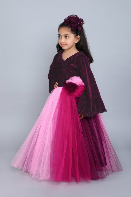 New ArrivalPinkChick Multicolor Velvet Gown -Burgundy