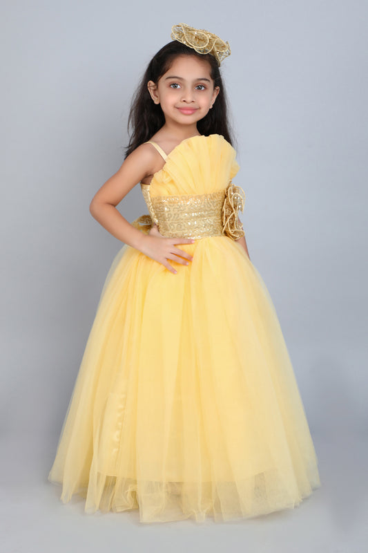PinkChick Satin Bodice One Shoudler Gown -Gold