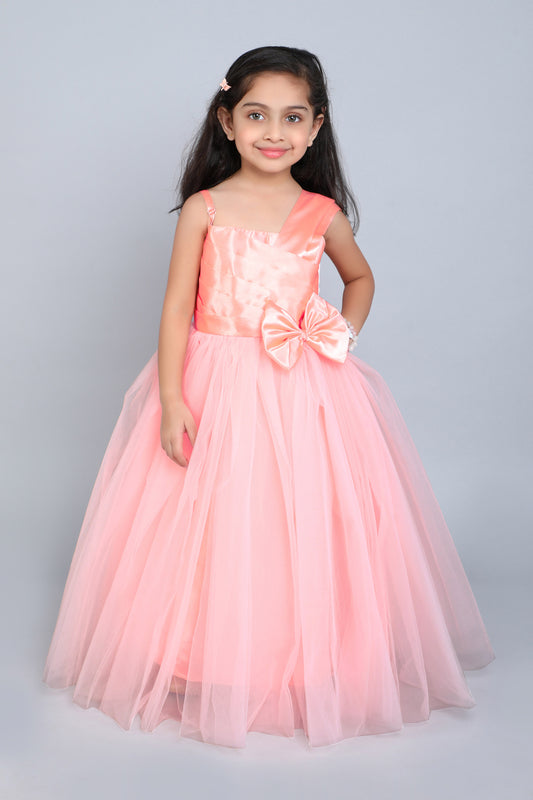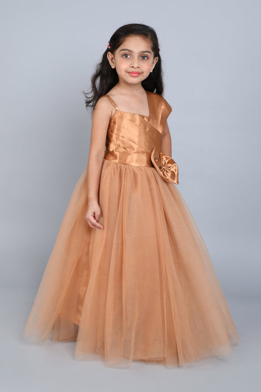 PinkChick Satin Bodice One Shoudler Gown -Peach