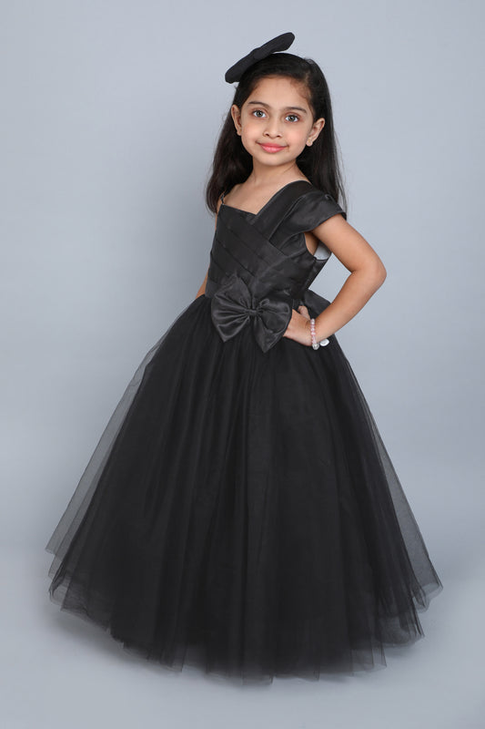 PinkChick Satin Bodice One Shoudler Gown -Black