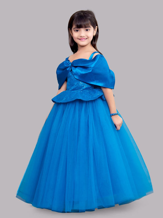 Blue Sequins Bow Gown