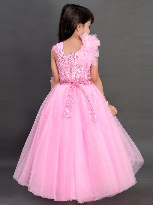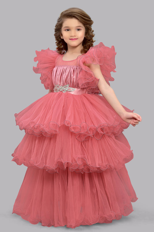 New ArrivalPinkChick Pleats N Ruffle Gown --Pink