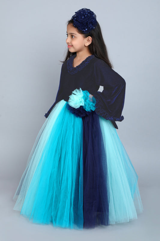 New ArrivalPinkChick Multicolor Velvet Gown -Blue