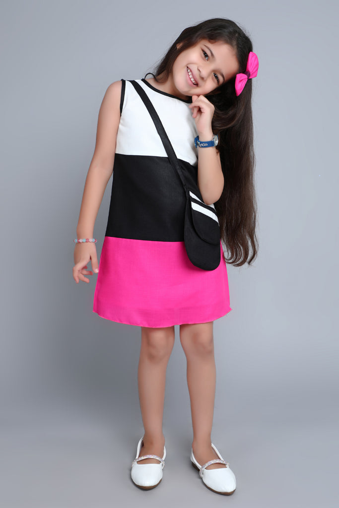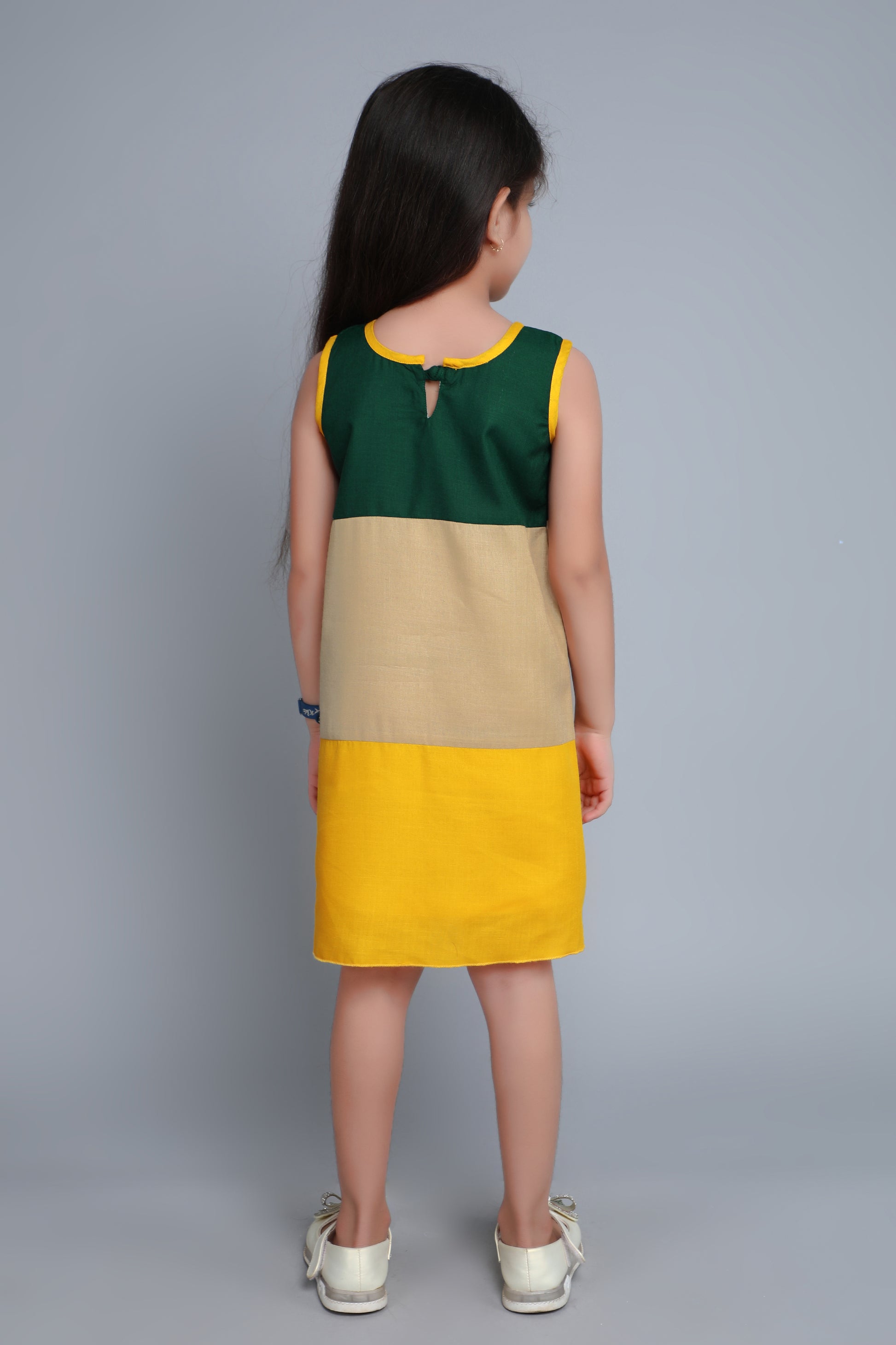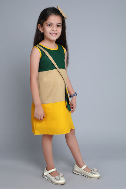 Colorblock Aline Dress with Sling and Matching Bow Clip -Yellow&Green