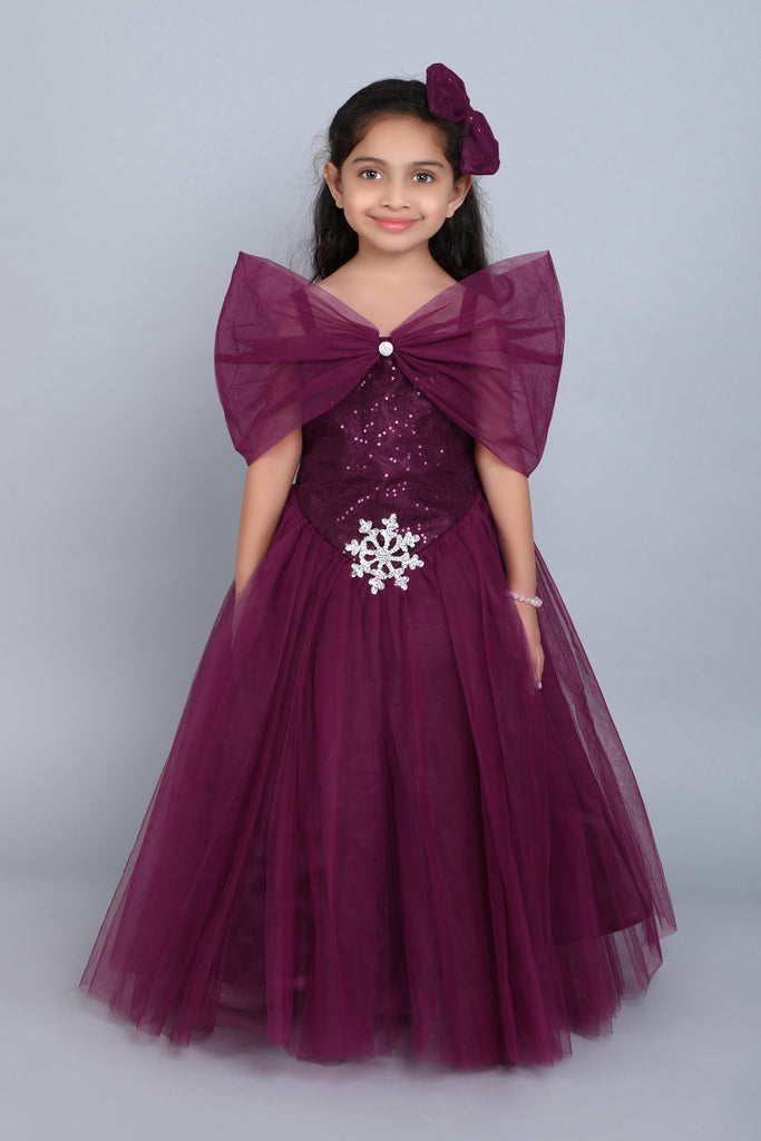 DETAILS Off Shoulder Sequins Peplum bodice, Gown flare, Crinoline layer & Child friendly lining within ,Zipper back closure with adjustable tie back sash , Washcare : Dry Clean Only |