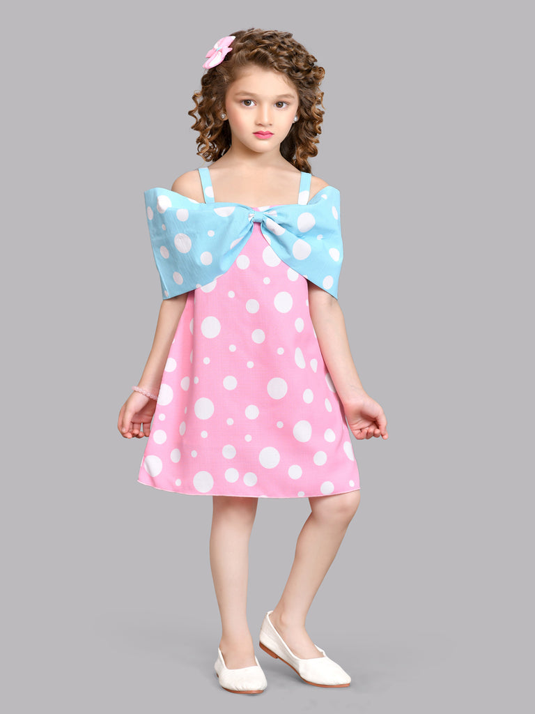 Puff Sleeves Colorblock Collar Cotton Dress with Matching Sling and Bow Clip - Pink