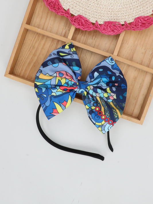 Blue Printed Bow Hairband -Blue