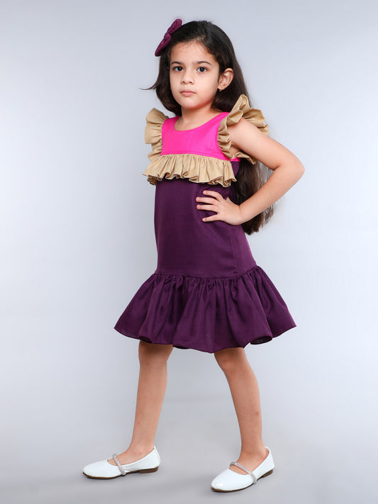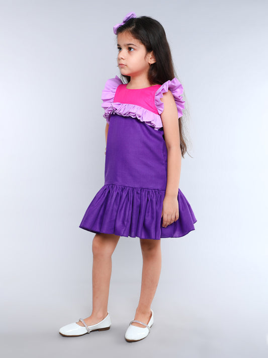 New ArrivalCotton Drop Waist ColorBlock Dress -Purple