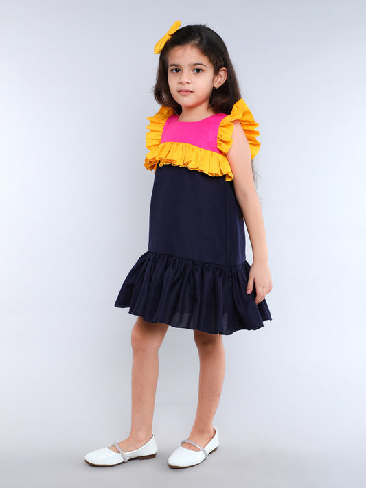 ColorBlock Heart A-Line Dress With Matching Clip -Navy Blue