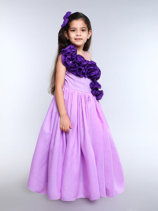 ColorBlock Ruffled Neck Cotton Gown With Matching Clip - Lavender