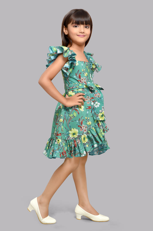 New ArrivalGreen Ruffle V Neck Floral Dress