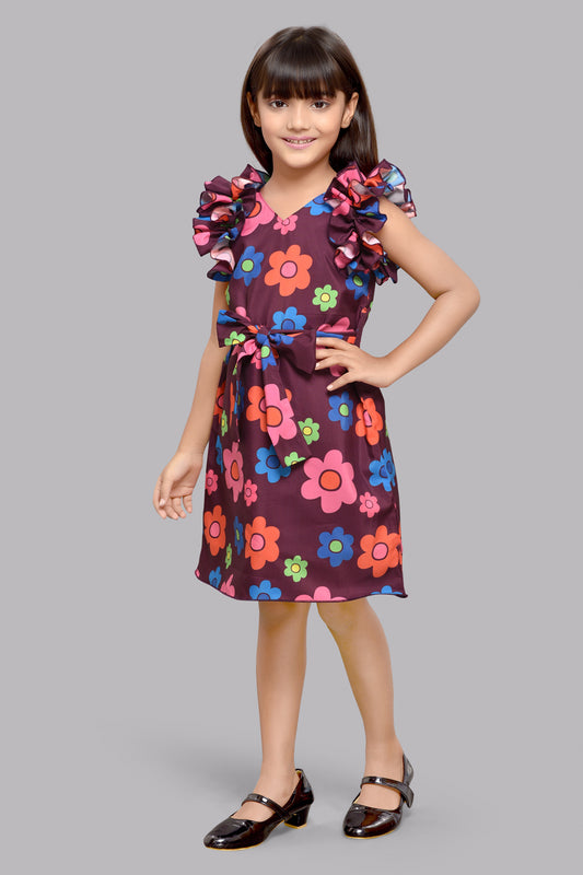 New ArrivalFloral Shift Dress with Ruffle Sleeves -Burgundy