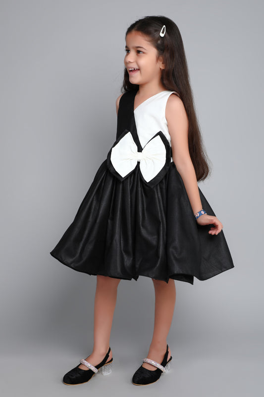 Colorblock Cotton Dress with Matching Clip -Black & White