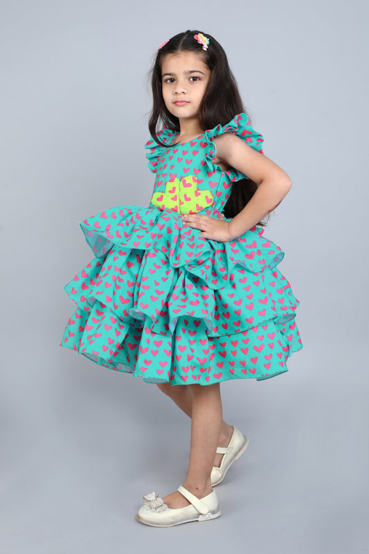 New ArrivalHeart Layered Cotton Dress -Teal