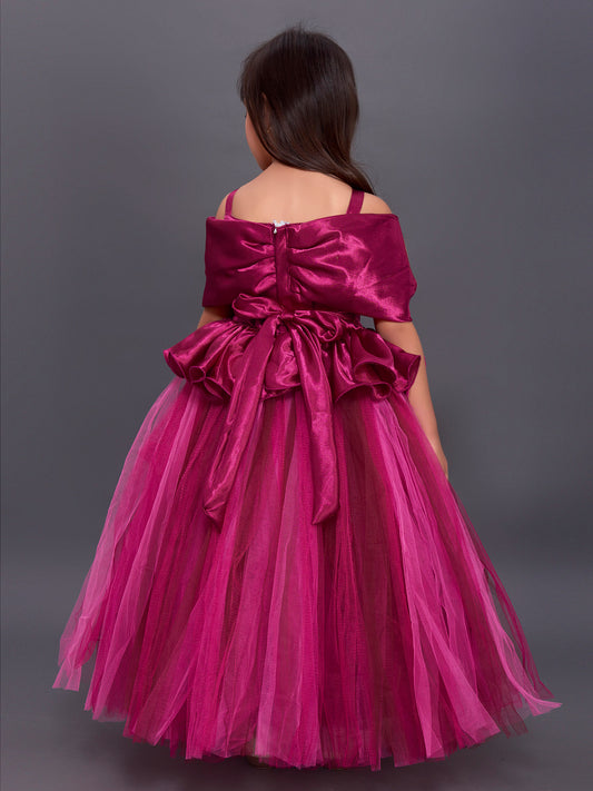 Off Shoulder Wine Peplum Tutu Gown