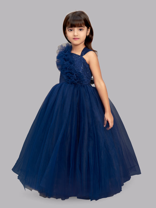 Navy Blue Ruffled Sequins Bodice Gown