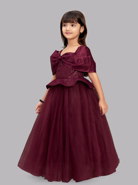 Burgundy Sequins Bow Gown