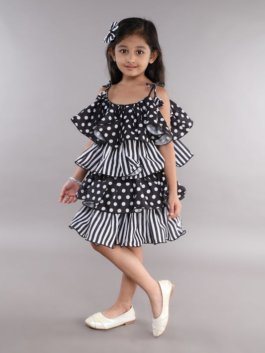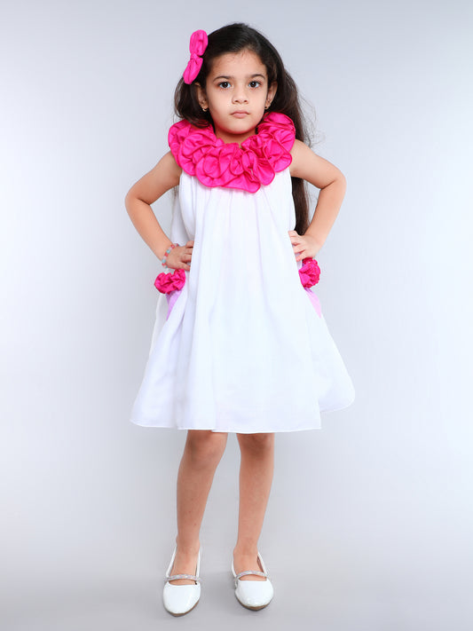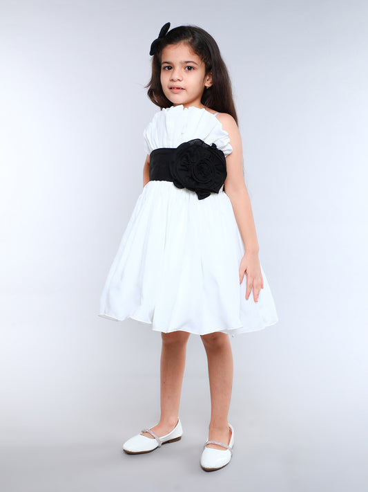 Colorblock Cotton Ruffled Silhouette Dress With Matching Clip -White& Black