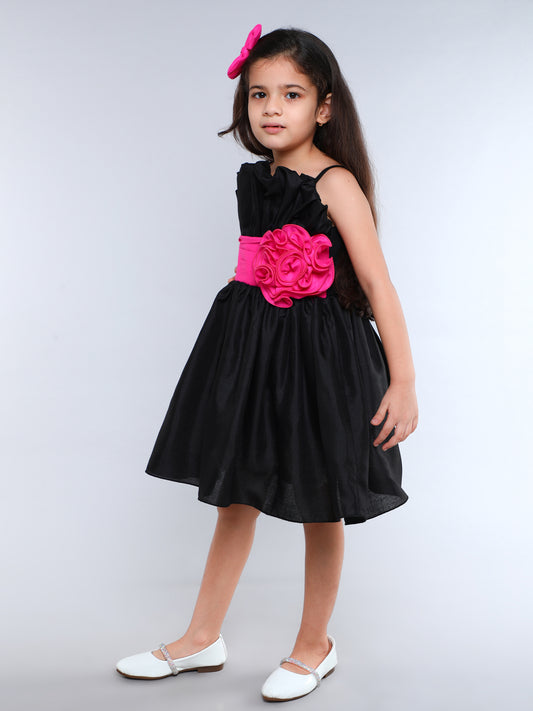 Colorblock Cotton Ruffled Silhouette Dress With Matching Clip -Black
