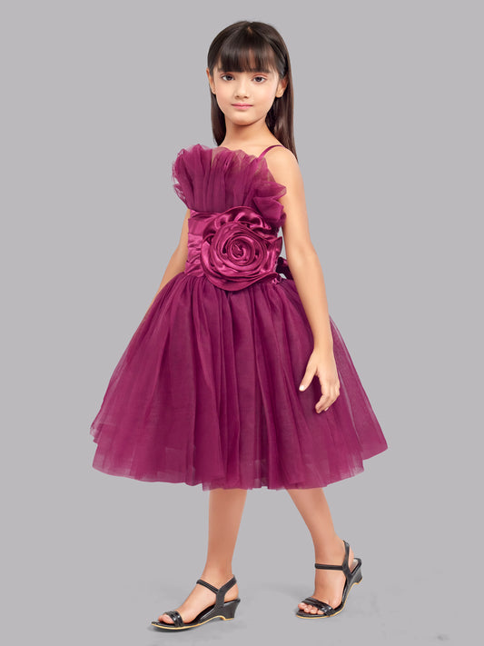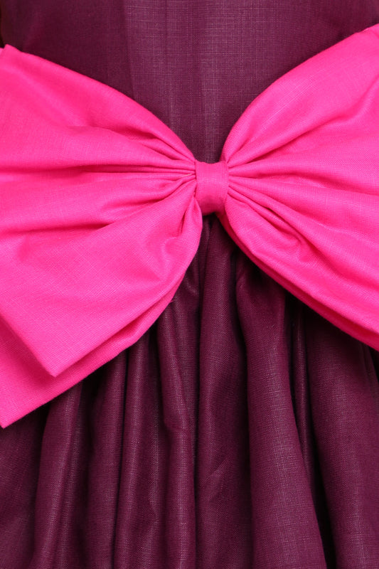 Colorblock Cotton Balloon Bow Dress with Matching Clip - Burgundy &Pink