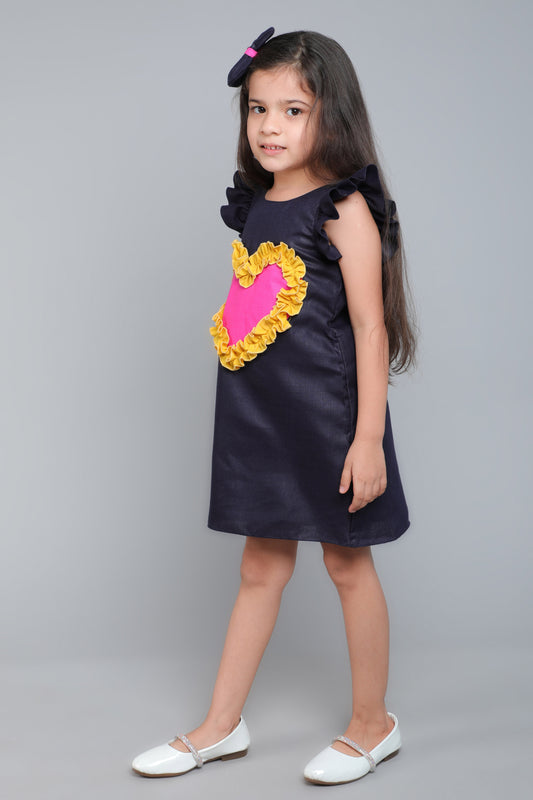 ColorBlock Heart A-Line Dress With Matching Clip -Navy Blue