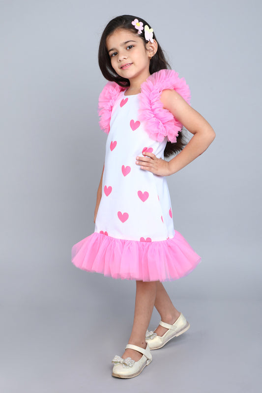 New ArrivalHeart Printed A Line Cotton Dress -Pink