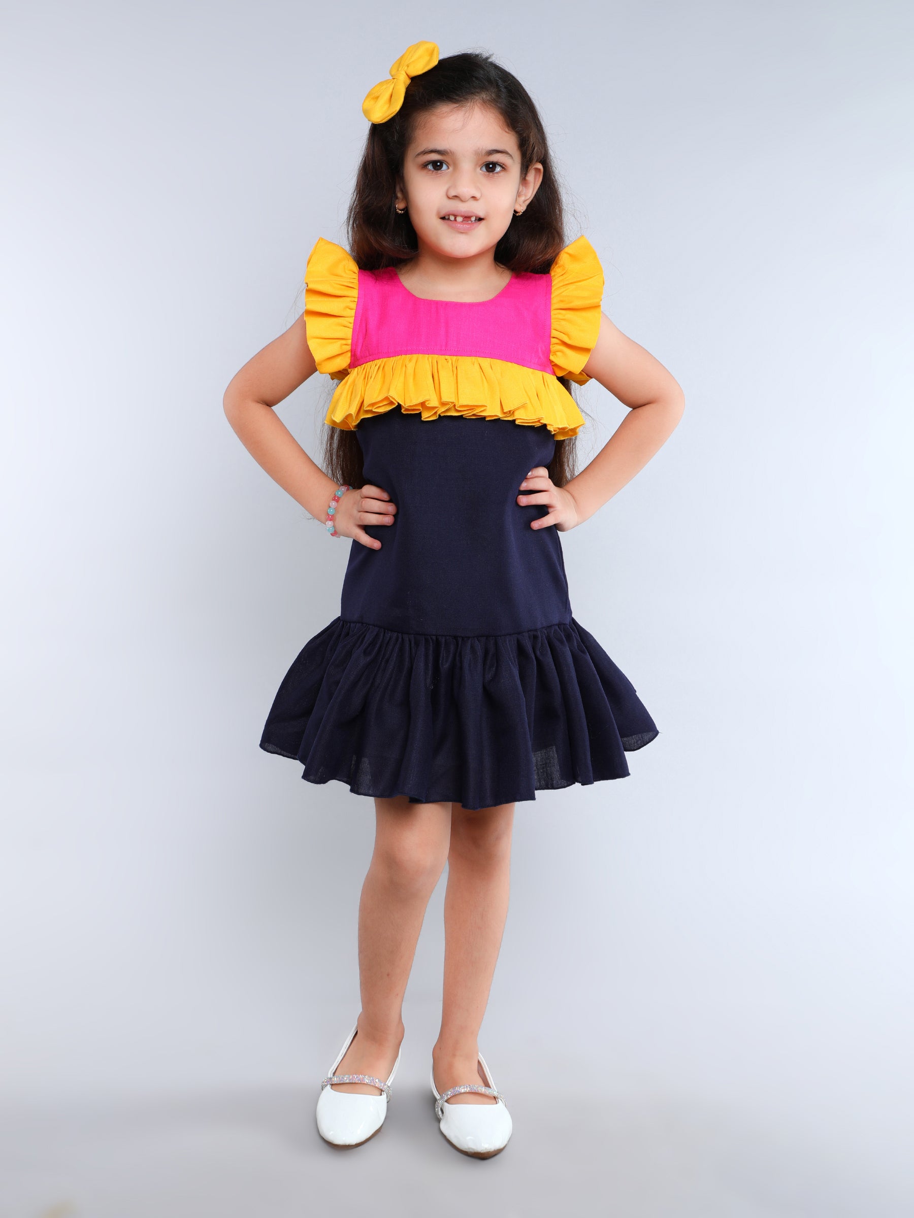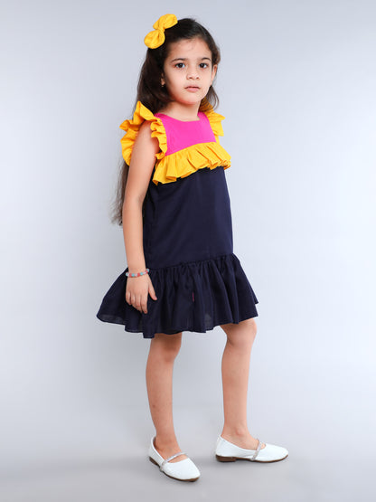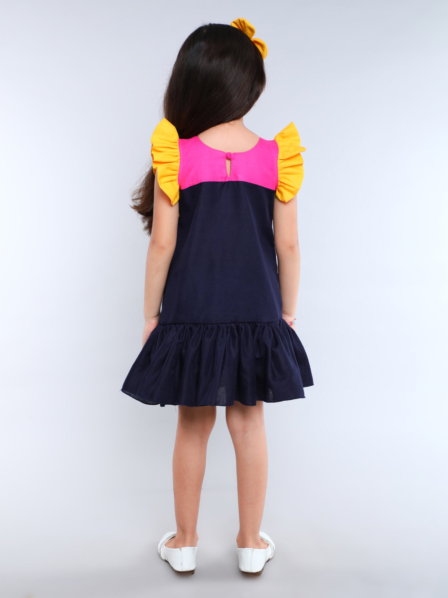 Cotton Drop Waist ColorBlock Dress -Navy Blue