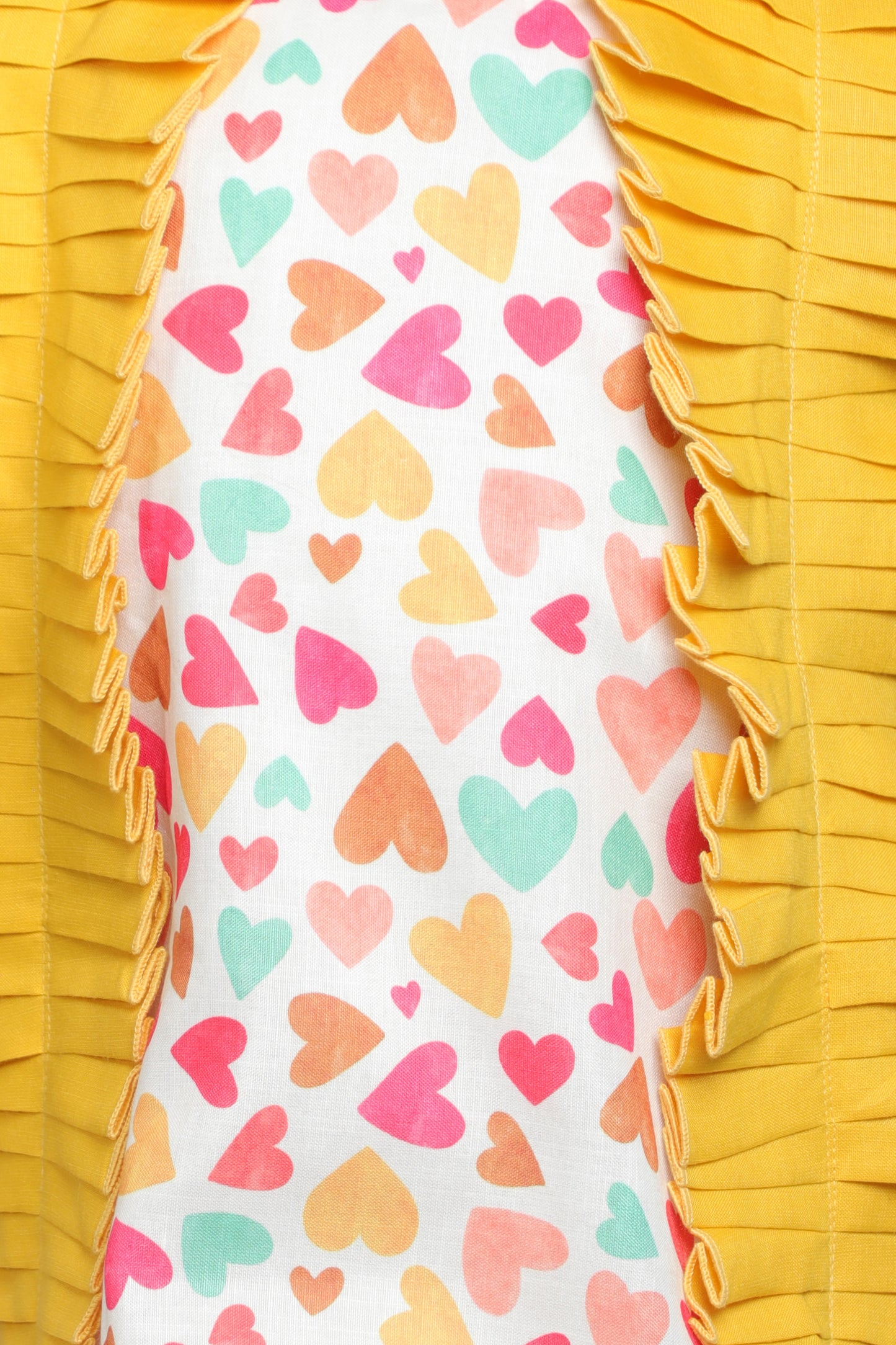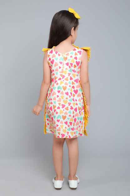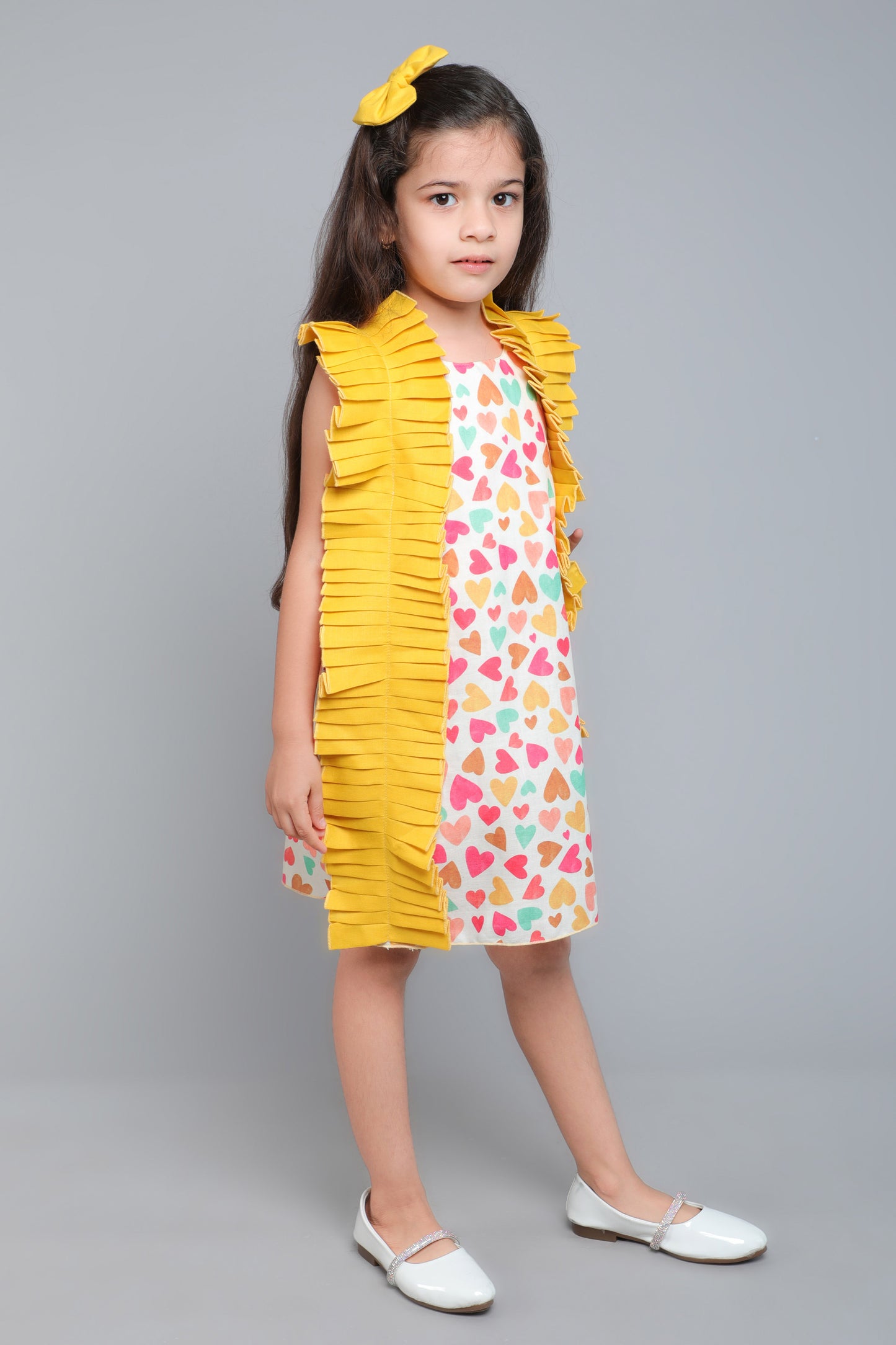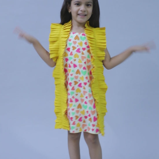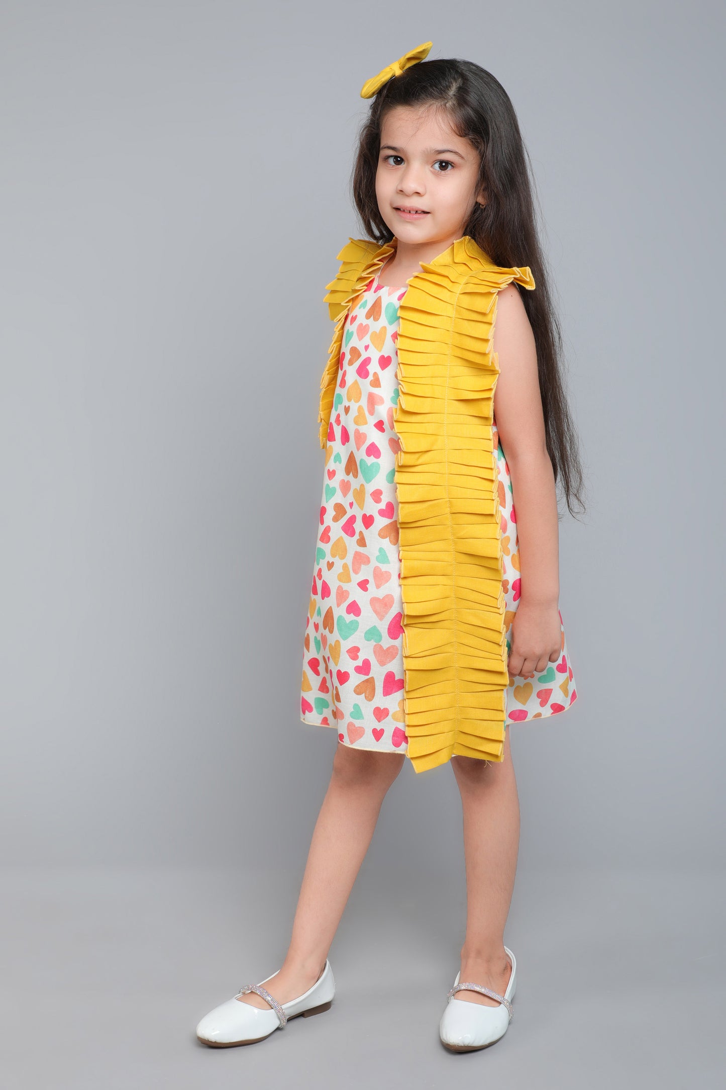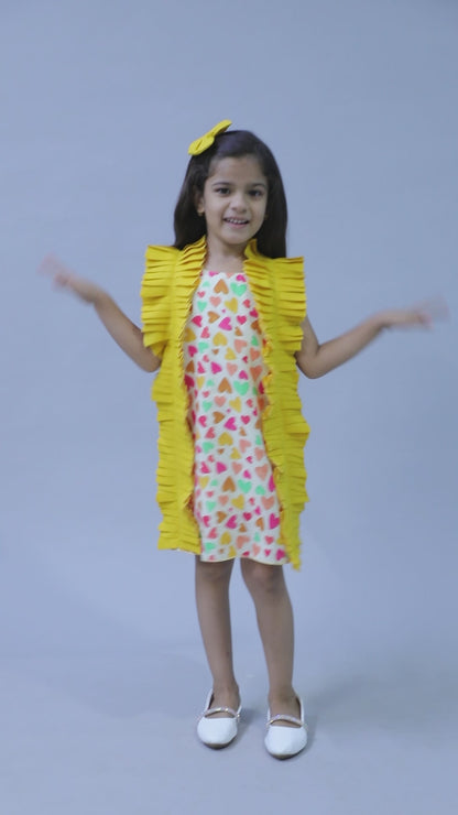 Heart Ruffle Detail Aline Dress with Matching Clip- Yellow
