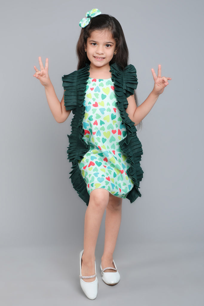 Heart Layered Cotton Dress With Matching Clip -Pink