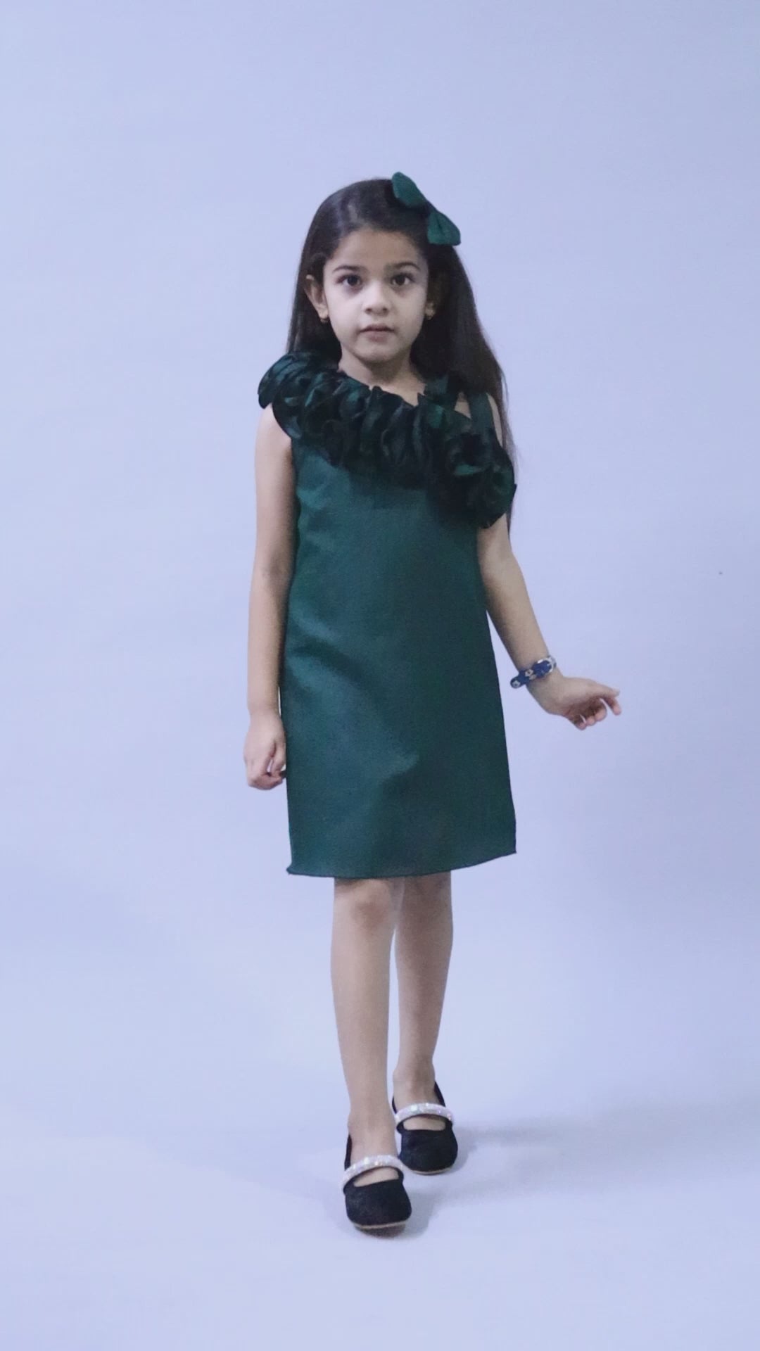 One Shoulder Ruffle Aline Dress with Matching Bow Clip -Green