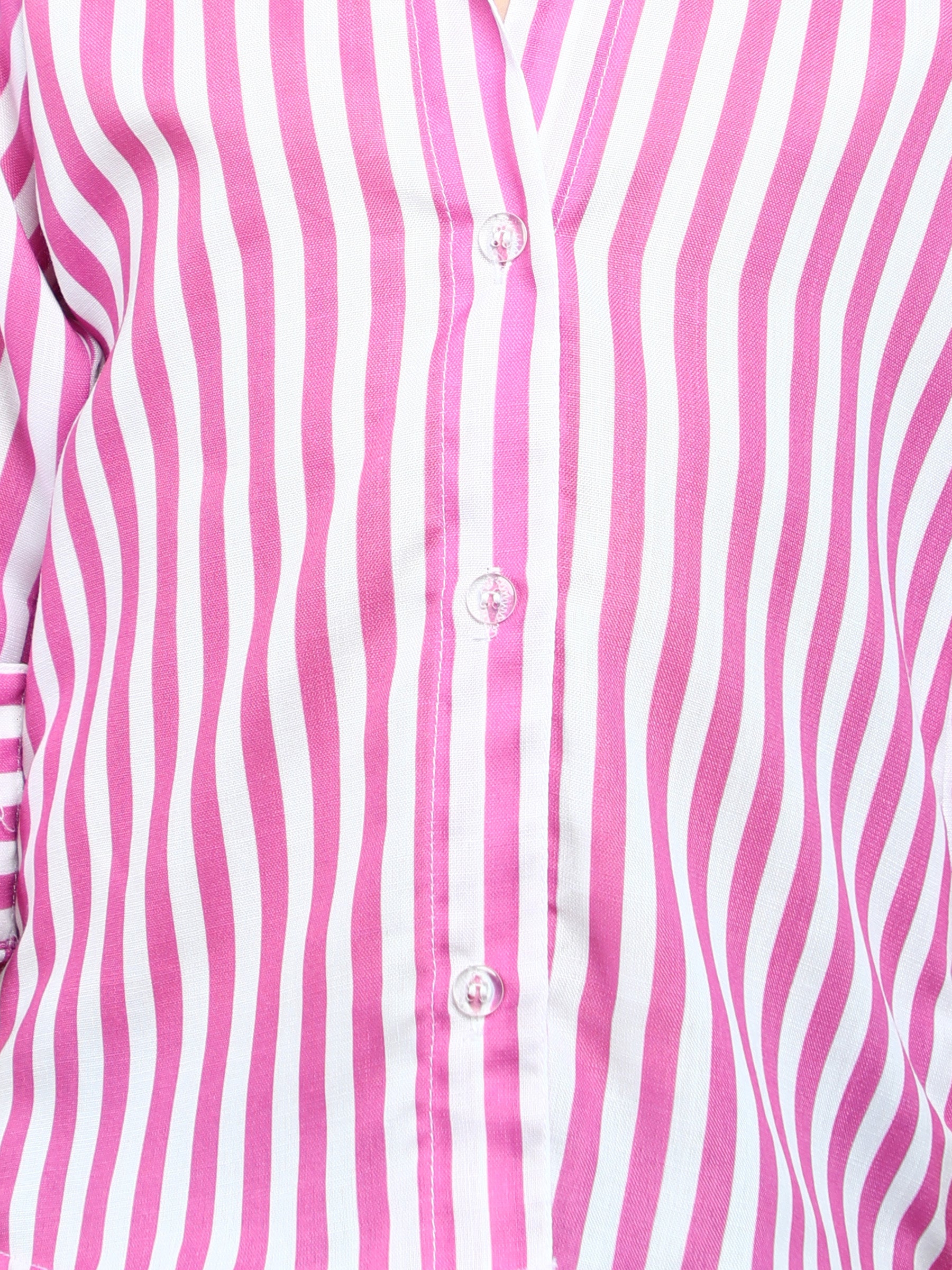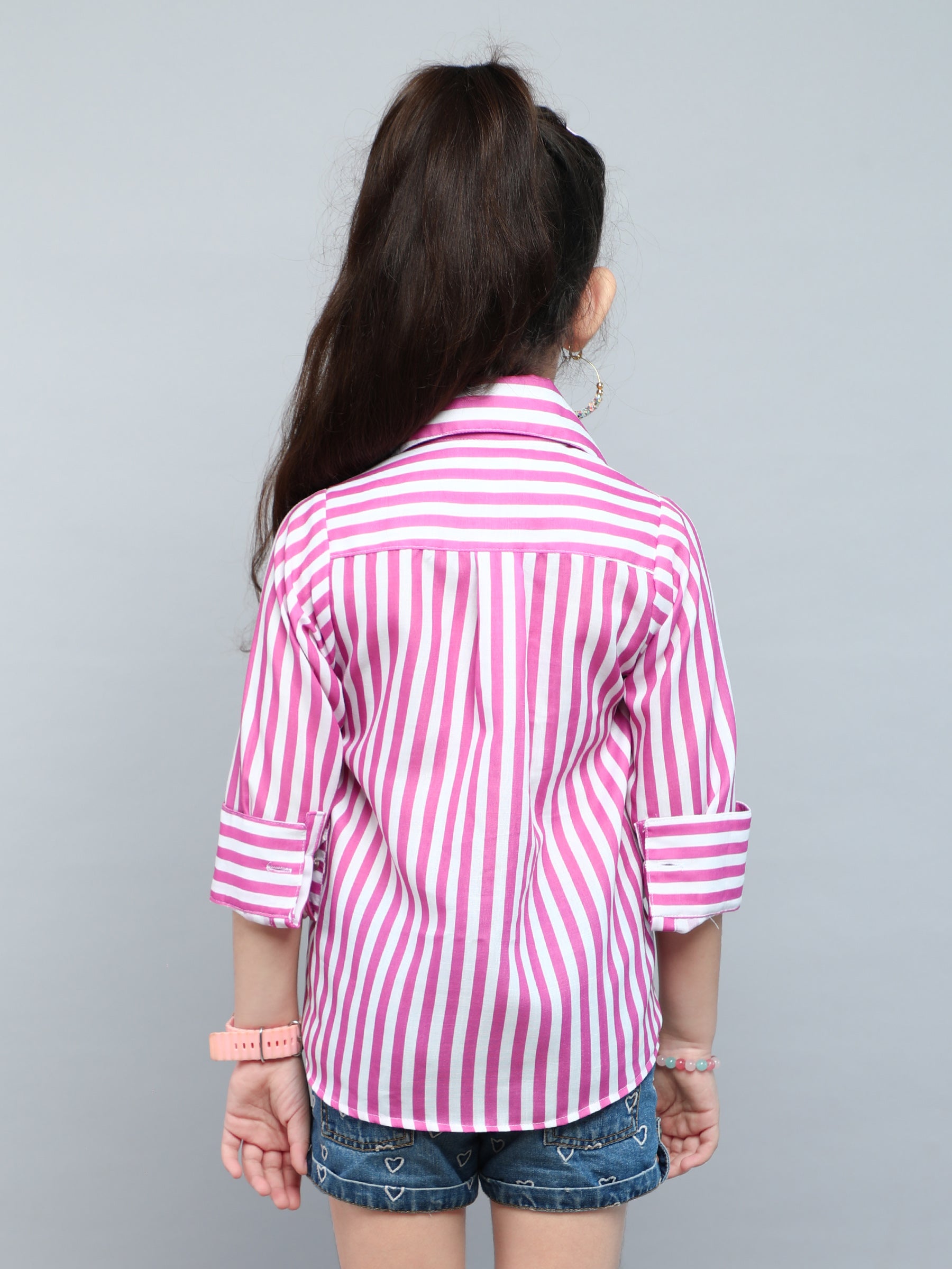 This trendy Purple and white striped shirt is perfect for stylish young girls. Designed with a smart collar and button-down front, it offers both comfort and fashion for everyday wear or outings.