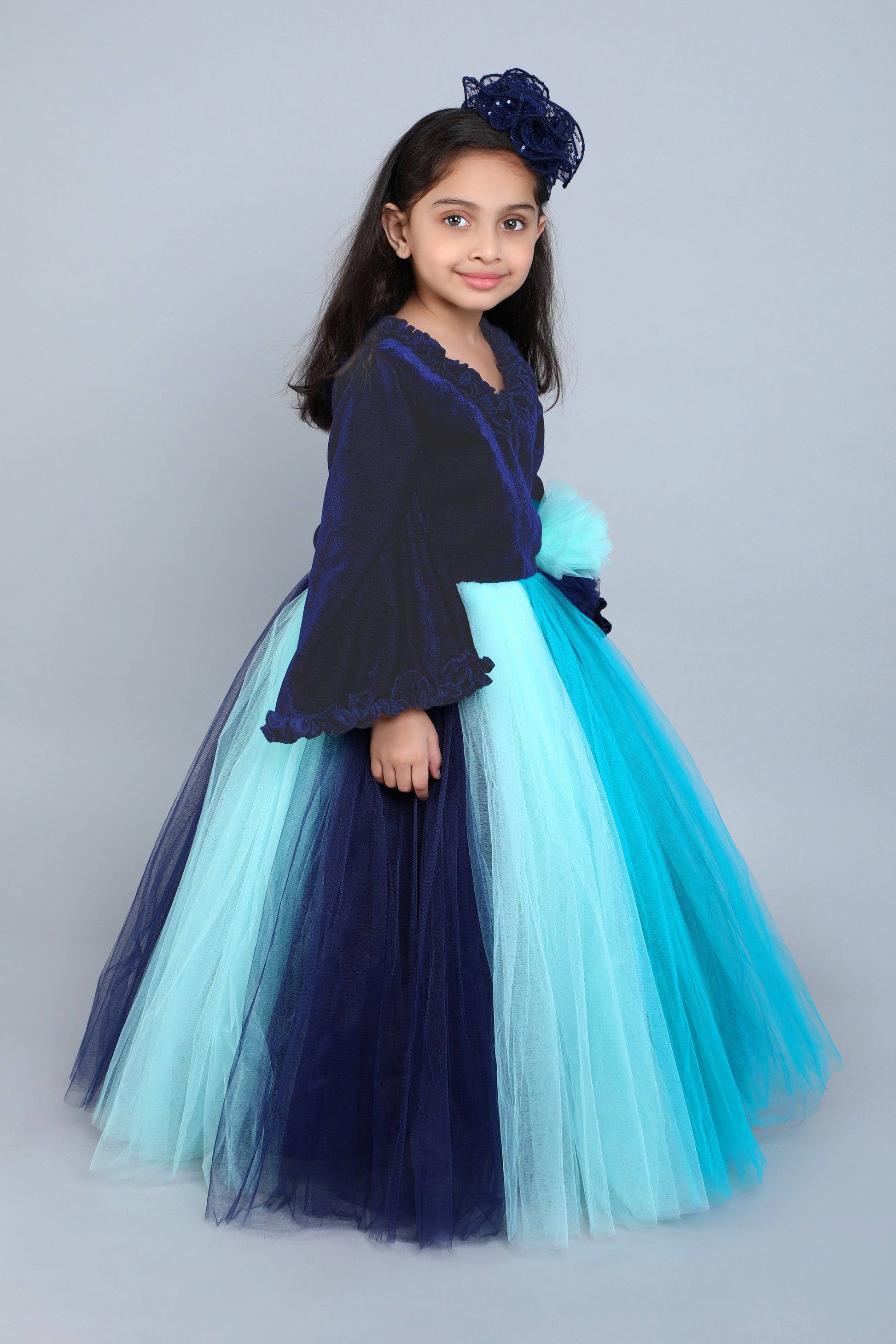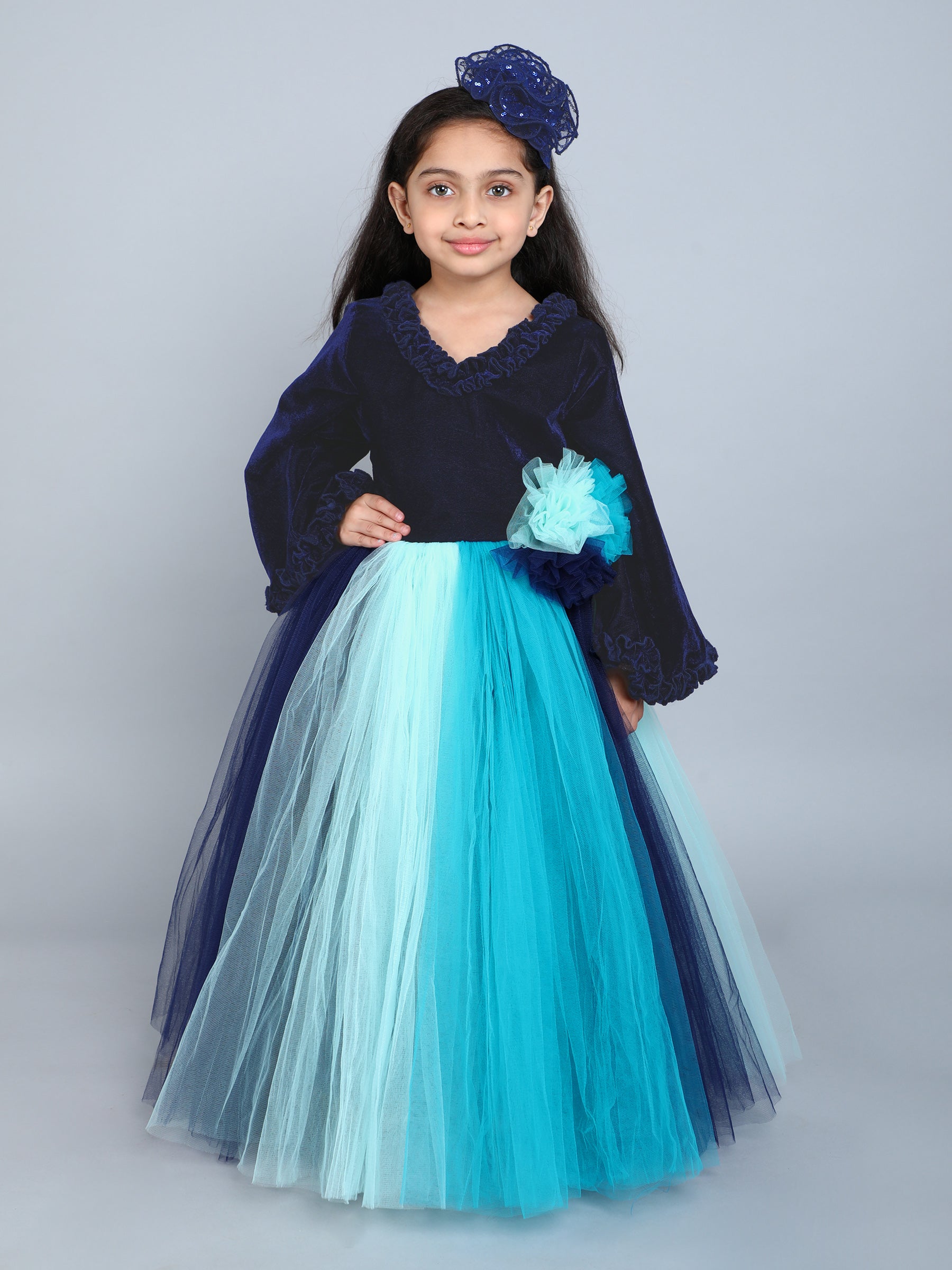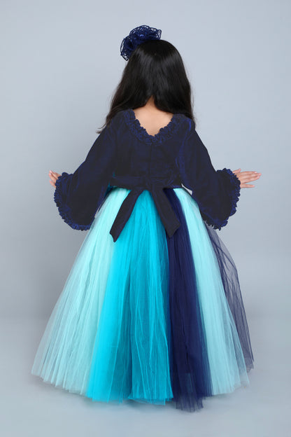 PinkChick Multicolor Velvet Gown -Blue