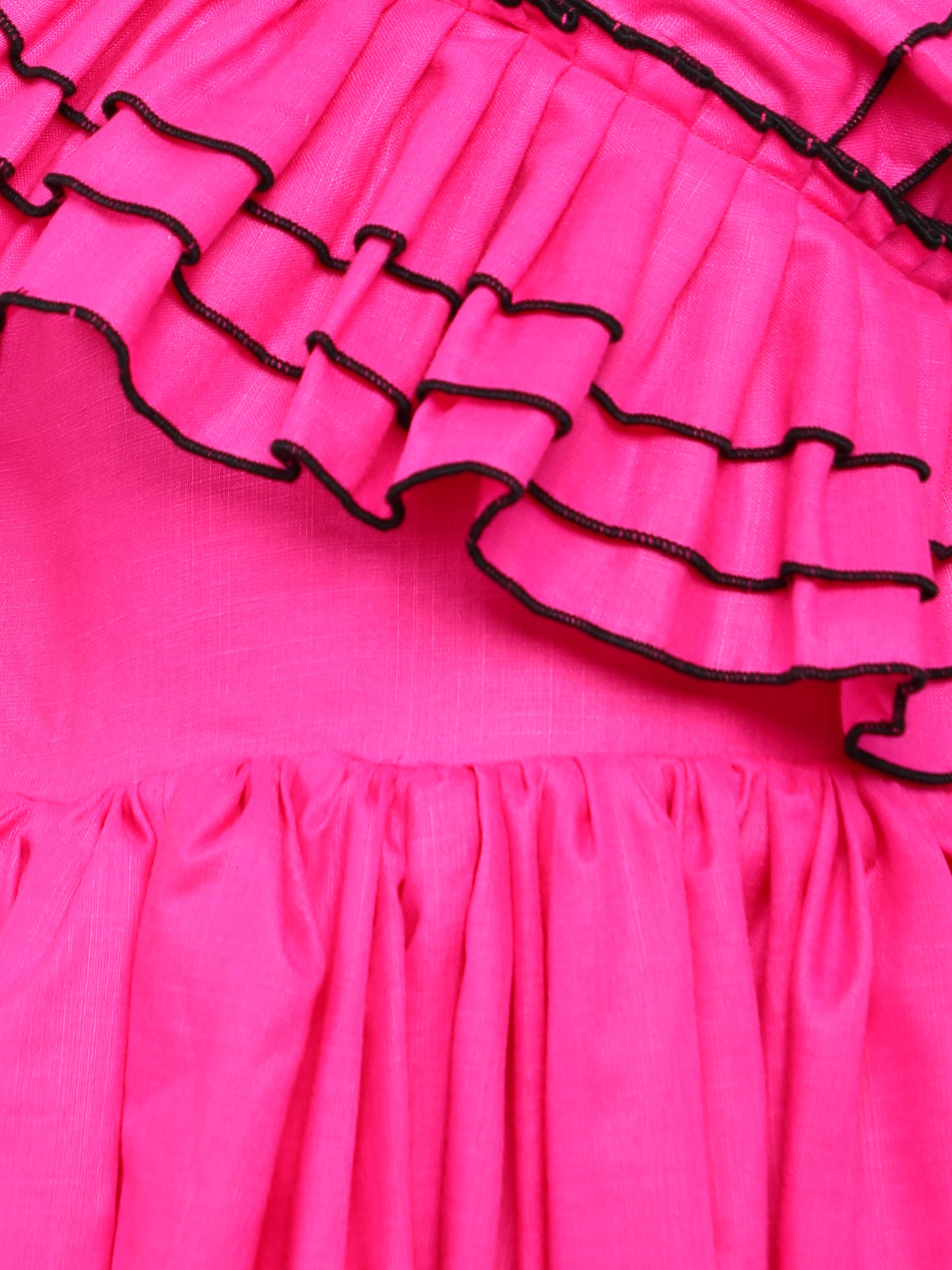 Ruffled Neck Cotton Gown With Matching Clip -Pink