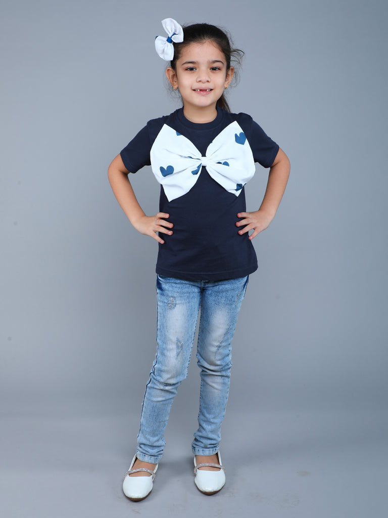 Add a touch of sparkle to your child's wardrobe with this adorable Bow-Applique t-shirt. Designed for girls aged 2 to 14 years, this everyday essential combines comfort with cute, trendy style.