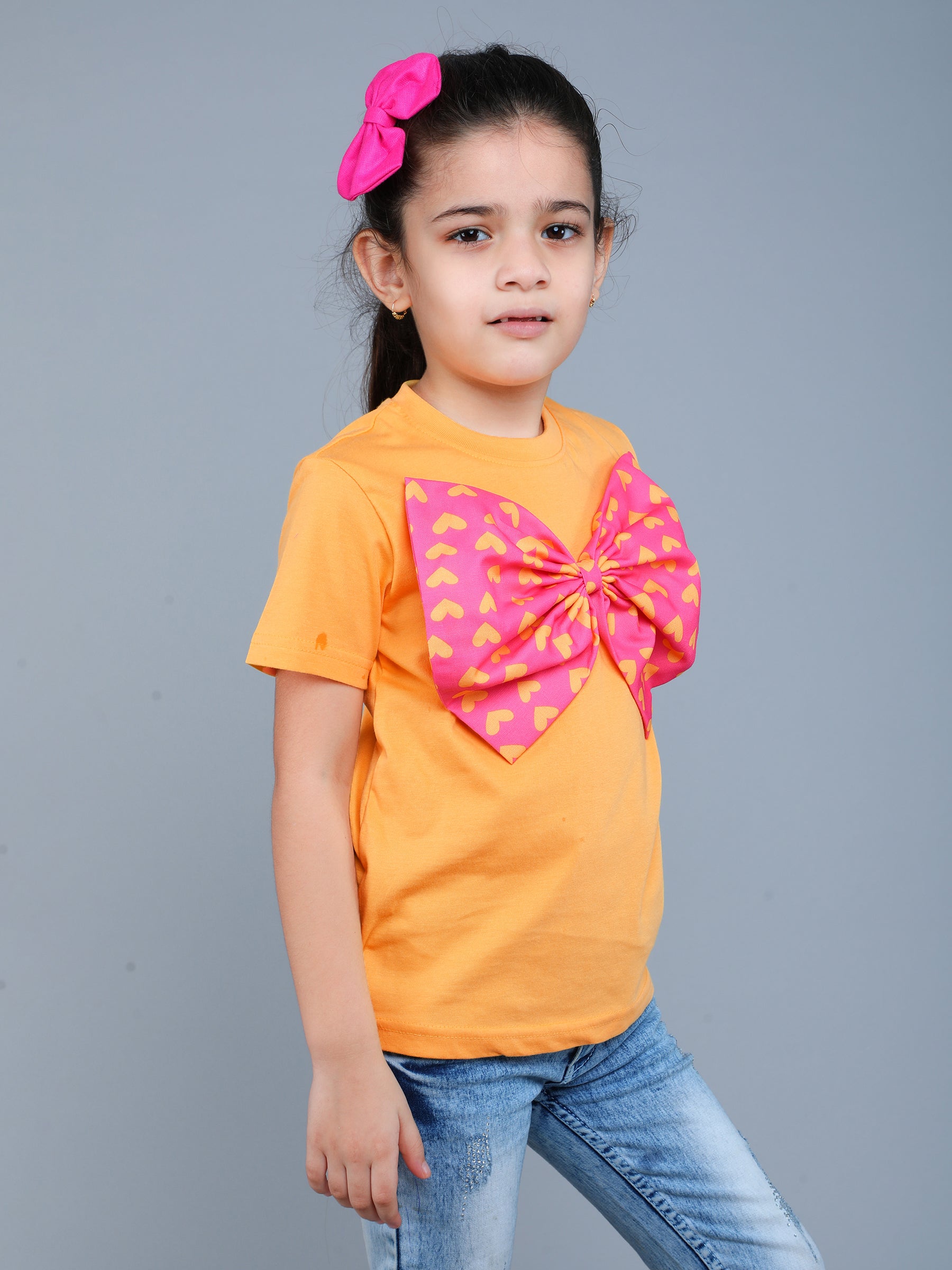 Add a touch of sparkle to your child's wardrobe with this adorable Bow-Applique t-shirt. Designed for girls aged 2 to 14 years, this everyday essential combines comfort with cute, trendy style.
